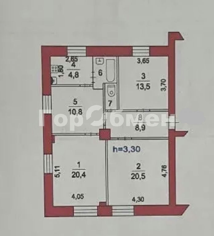Комнаты: 20.5 20.4 13.5 м2
